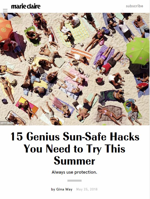 15 GENIUS SUN-SAFE HACKS YOU NEED TO TRY THIS SUMMER // MARIE CLAIRE, JUNE 2018