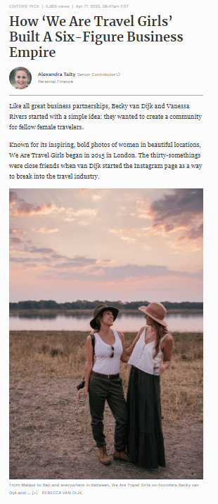 HOW WE ARE TRAVEL GIRLS BUILT A SIX FIGURE BUSINESS EMPIRE // FORBES, APRIL 2020